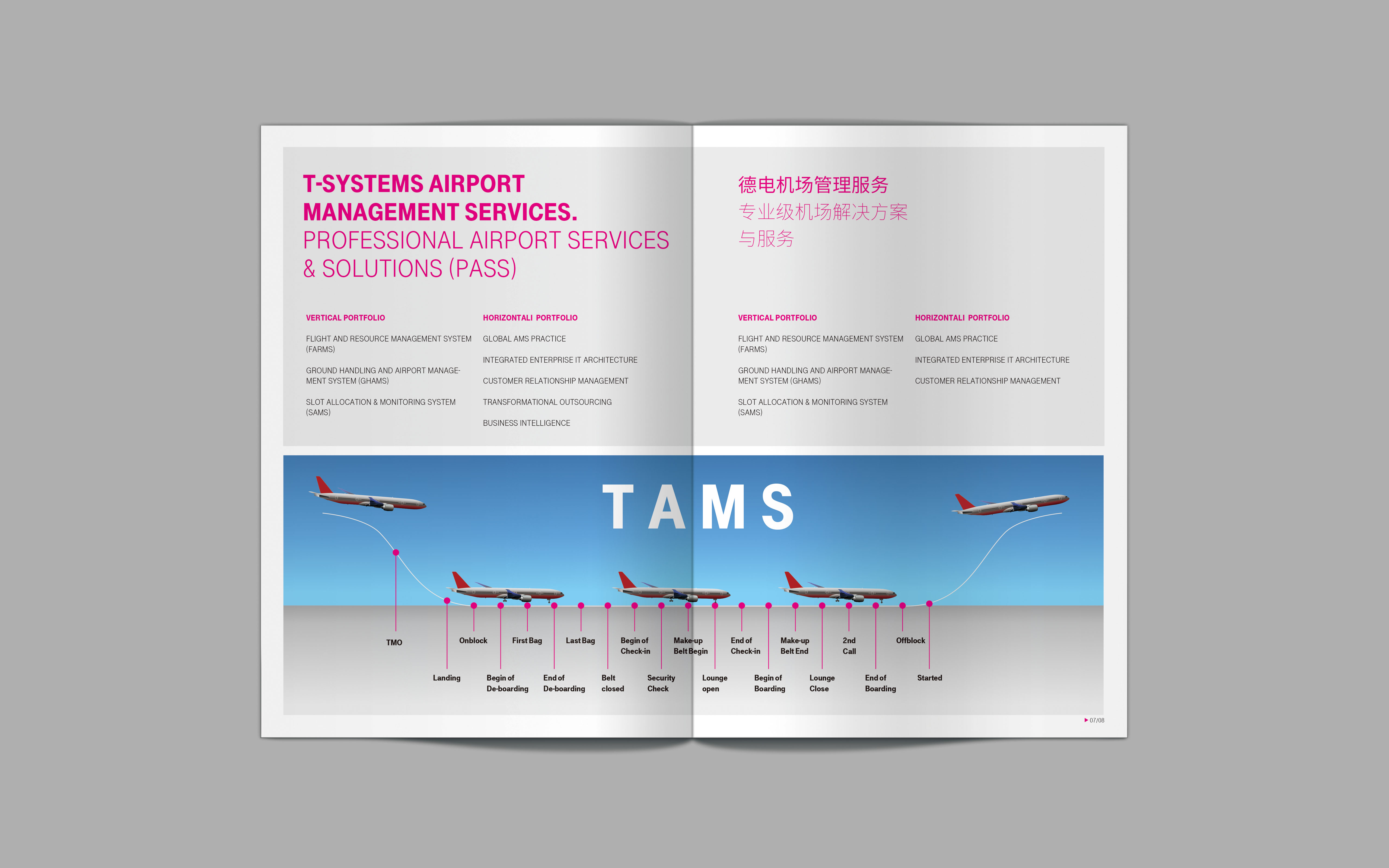独特的双封面设计,将德电的视觉辅助图形通过三维的方式完美展现,同时增加与观者的互动,引起继续浏览的兴趣。德电全机场的管理与服务隐喻在封面与封底的 一升一降之中。